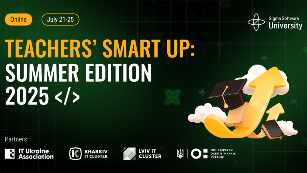 Next week (from July 21 to 25), Sigma Software University is organising the unique TEACHERS’ SMART UP project. This project, recognised with the DOU Awards 2025, will once again bring together a community of educators who are eager to modernise education – making it contemporary, practical, and relevant to the needs of the IT […]